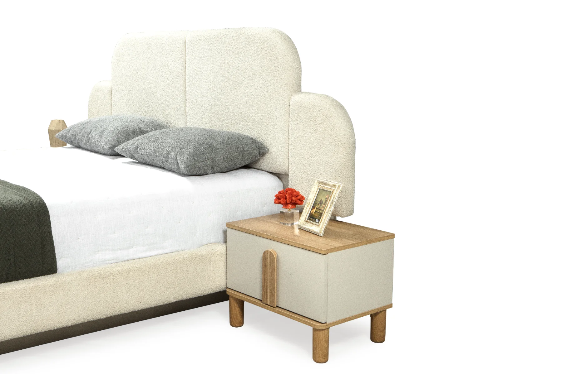 Bohem Yatak Odası Takımı, Dolunay rengiyle yatak odanıza sıcak ve sofistike bir atmosfer katıyor. 160x200 cm karyolası ve 6 kapaklı geniş dolabıyla hem şık hem de işlevsel bir uyku alanı yaratıyor. Puffy kumaşın kadifemsi dokusu, her sabah uyanışınızı küçük bir lükse dönüştürüyor.