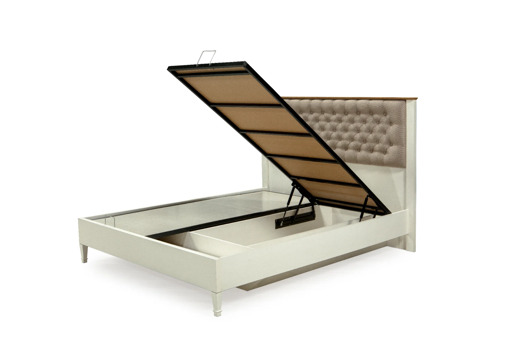 Rose Yatak Odası Takımı, beyaz lake kaplama ve kahverengi kumaş detaylarıyla yatak odanıza hem sıcaklık hem de zarafet katıyor. 225 cm genişliğindeki 5 kapaklı dolabı ve 160x200 karyolasıyla geniş aileler için ideal bir tercih. Uyumlu tasarımı sayesinde modern ve klasik dekorasyonlarla mükemmel bir uyum sağlıyor.